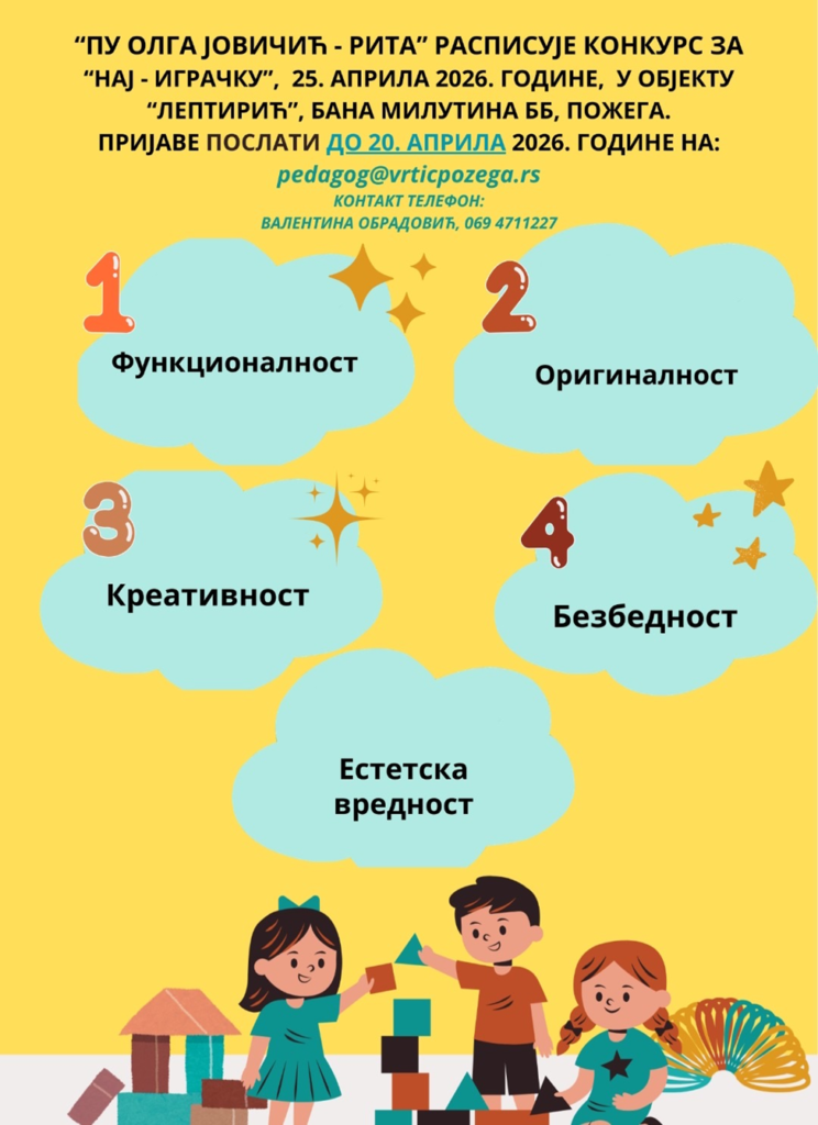 Радујемо се овогодишњој манифестацији „НАЈ- ИГРАЧКА“ која ће се одржати у нашем вртићу. Биће нам велико задовољство да заједно поделимо занимљиве и едукативне радове, разменимо идеје и проведемо пријатно време у топлој и подстицајној атмосфери.
