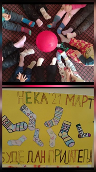 Један од симболичних и деци посебно занимљивих начина обележавања овог дана било је ношење различитих чарапа. Кроз овај једноставан, али снажан симбол, деца су на конкретан начин разумела поруку да је у реду бити другачији и да нас управо те разлике чине јединственим. Уз осмех и радозналост, поносно су показивала своје шарене чарапе, разговарајући о томе како свако од нас има нешто посебно по чему се издваја.